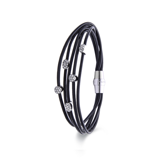 ACC.ST50-BLST,Black Leather,Steel,White Zircon