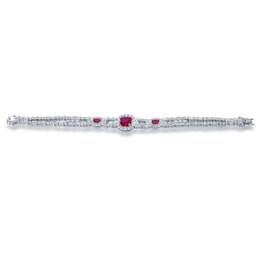 ACC. PXBR0868 ,Color stone:ruby glass,other white cz with rhodium plating, 17cm
