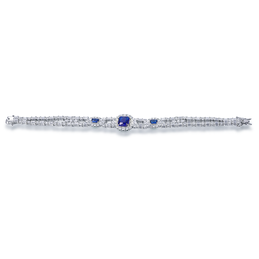 ACC. PXBR0869 ,Color stone:blue glass,other white cz with rhodium plating, 17cm