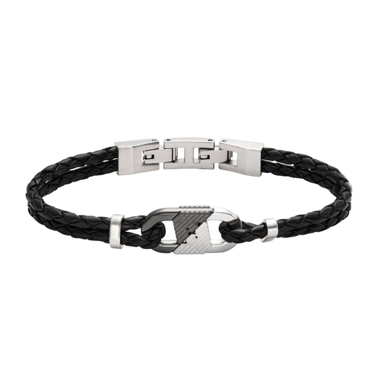 EGS3171040 ,This two-tone stainless steel and black leatHer ID bracelet features a sleek design that...