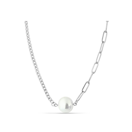 Polo Exchange Pearl Silver Tone Stainless Necklace