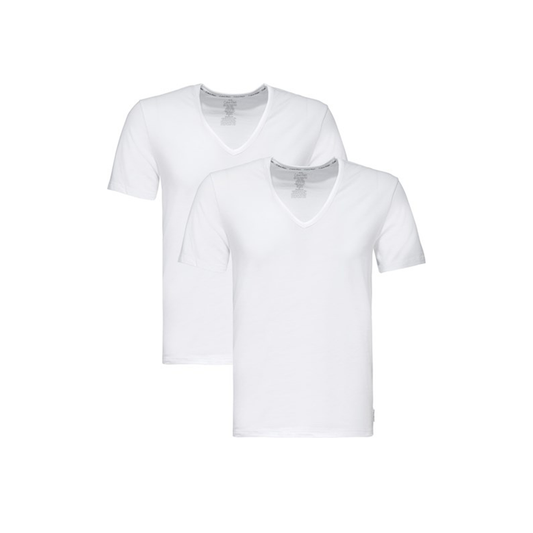 NB1089A Calvin Klein 2 Pack Modern Cotton V Shape Lounge White Shirts