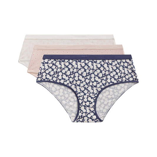 Dim Pack Of 3 Women'Spanties Sleep Short In Stretch Cotton With Floral Pattern In Pink...