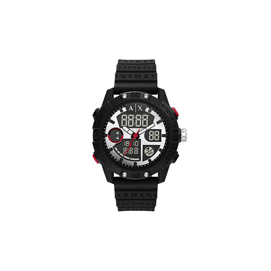 AX2960, Band Color: Black, Dial Color: White, Case Diameter: 46MM, Watch movement Type: Quartz/Digital