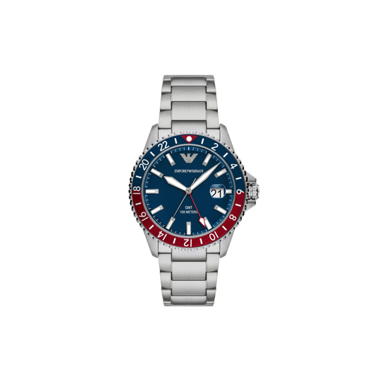 AR11590, Case: 42mm, Movement: Quartz, Bracelet material: Silver Stainless Steel, Dial: Blue