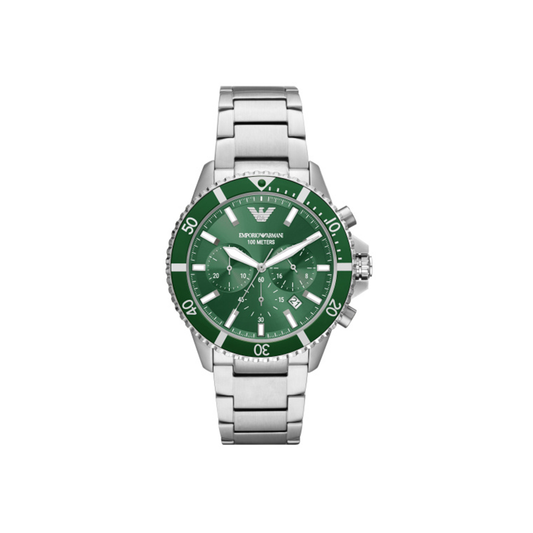AR11500 , Case: 43mm, Movement: Quartz, Bracelet material: Silver Stainless Steel, Dial: Green