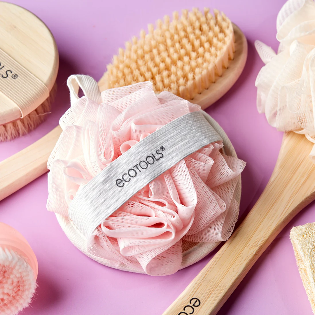 The EcoTools EcoPouf Dual Bath Cleansing Pad is designed with a natural loofah and recycled netting for a 2-in-1 all-over clean.