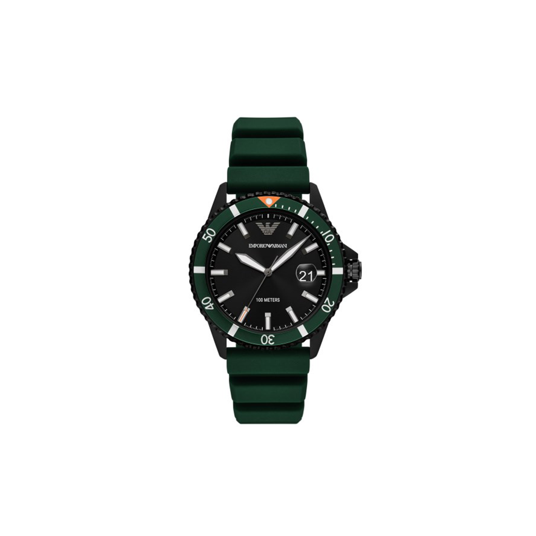 AR11464, Band Color: Rubber Green, Dial Color: Black, Case Diameter: 42MM, Watch movement Type: Quartz