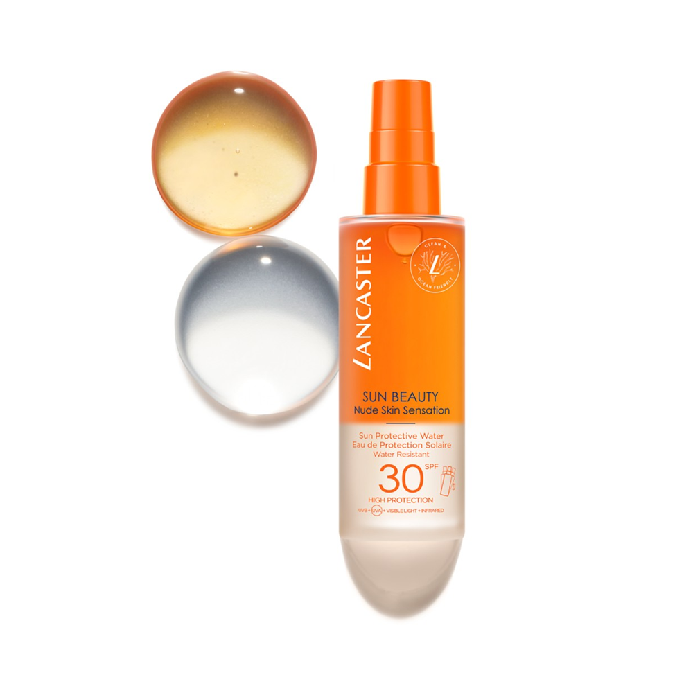 Clean and ocean friendly, our incredibly lightweight, refreshing and beautyfing "water" texture provides a healthy-looking golden tan in twice less time of sun exposure** and leaves your skin with a nude skin sensation.