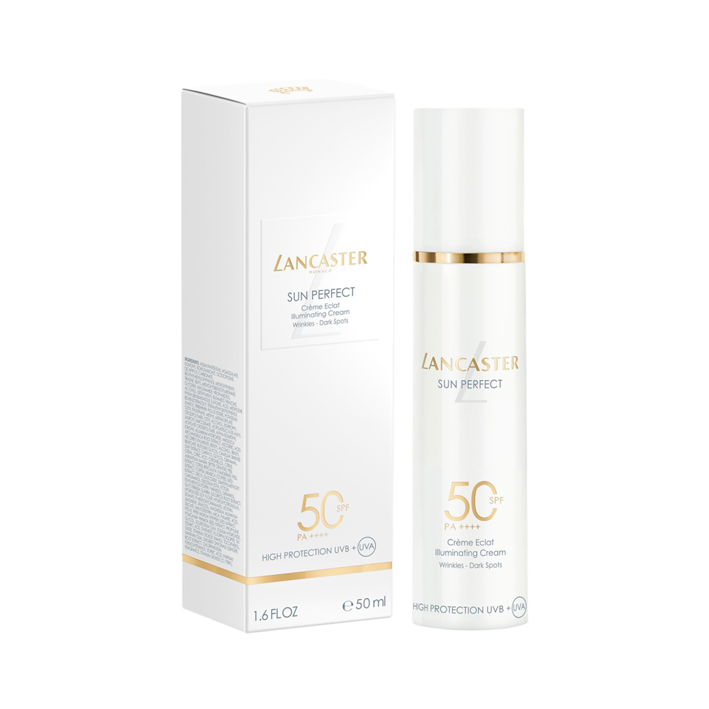 Reversing the visible signs of aging caused by photoaging, Lancaster Sun Perfect Illuminating Cream SPF50 features ultra-broad sun protection with anti-aging efficacy and repair efficacy. This daily photoaging shield promotes unified, perfected and younger-looking skin.