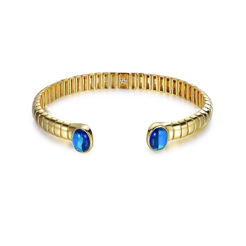Polo Exchange Big stone blue glass,other white cz with yellow gold plating 16cm