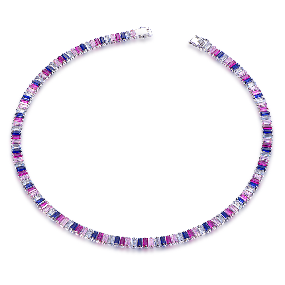ACC. PXNE0972 ,Mix color stone:Pink+Aquamarine+blue+Ruby with rhodium plating, 40cm