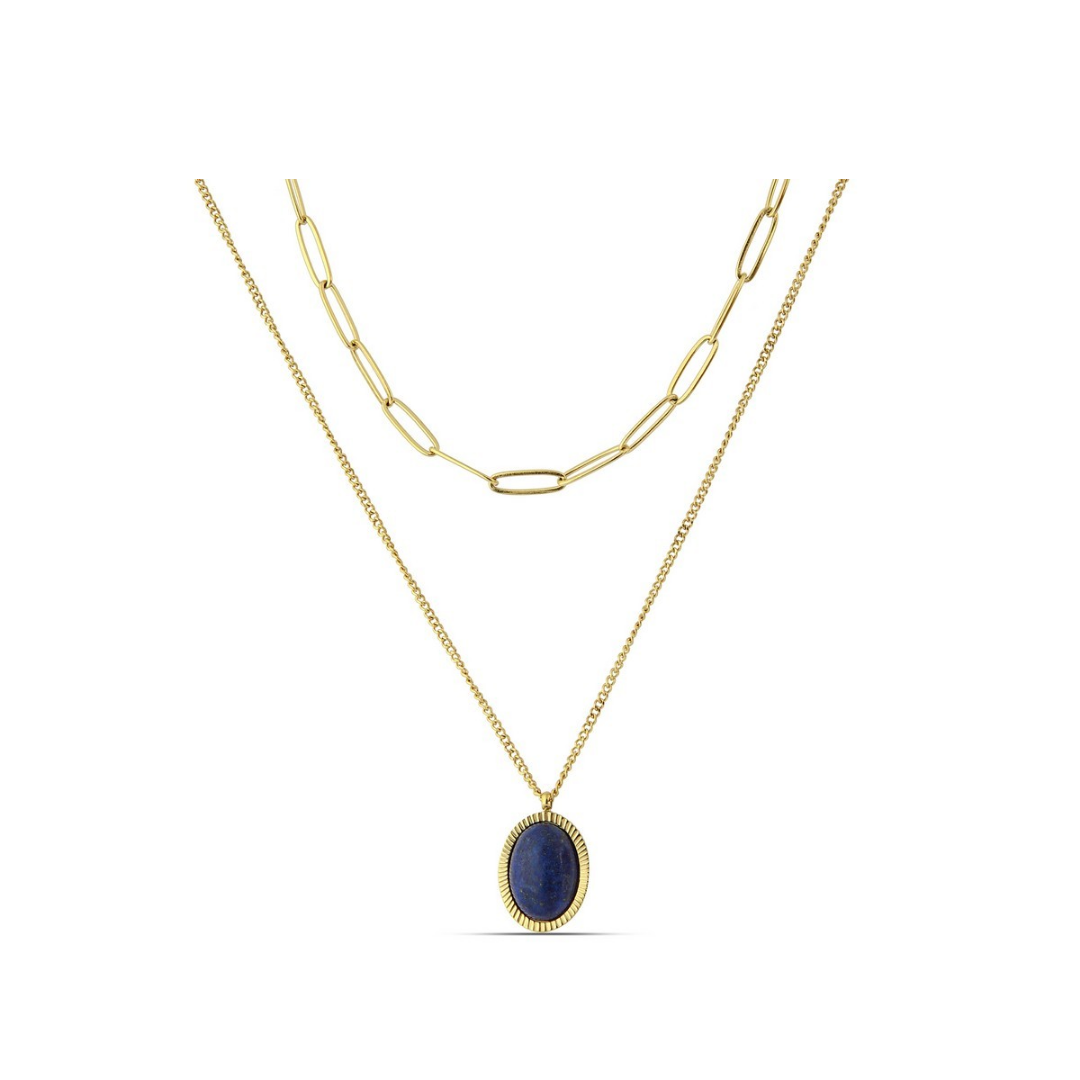 Polo Exchange Necklace Yellow Gold Plated Chain With Natural Stone Pendant Dark Blue.