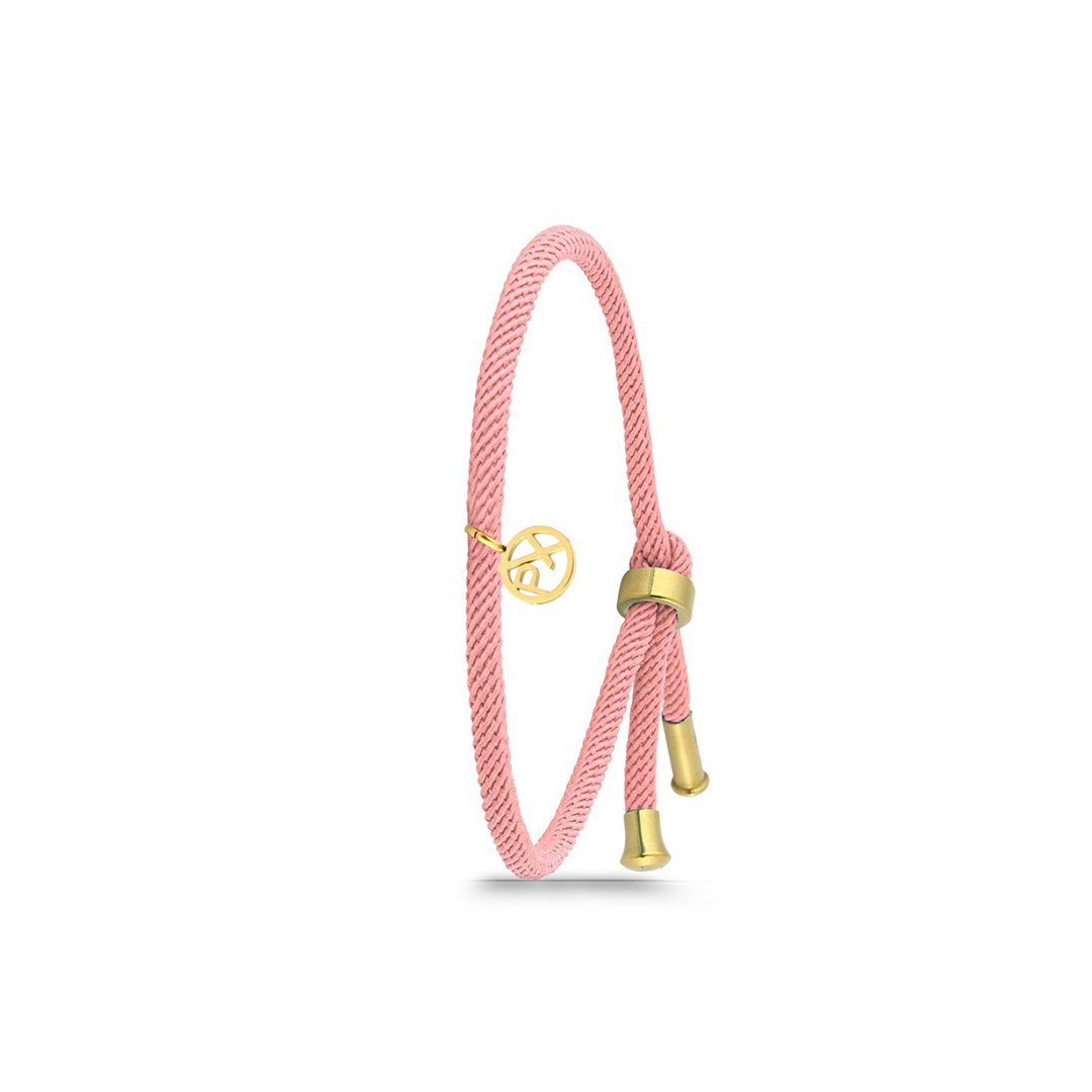 Polo Exchange Cord Bracelet Pink & Yellow Gold Details And Yellow Gold Pendant.