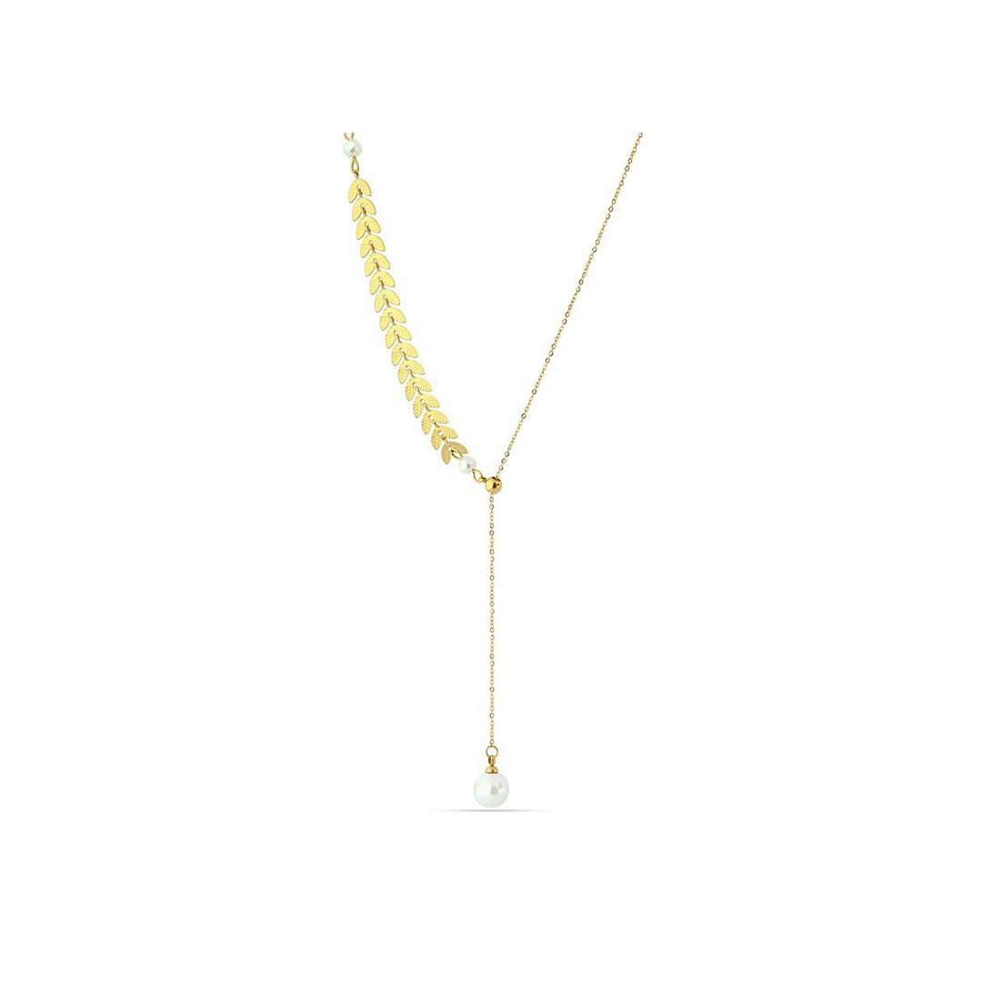 Polo Exchange Necklace Yellow Gold Plated Chain With White Pearl.