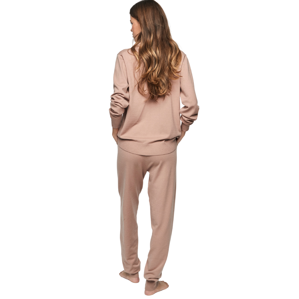 Knit set featuring a long-sleeved polo-collar top and long pants with cuffs and pockets. It's a versatile outfit that will take you from the comfort of your home to your outdoor activities.